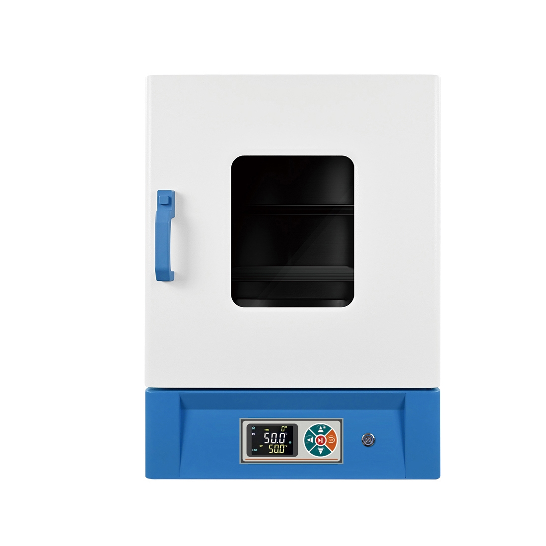 ·双层钢化玻璃观察窗,工作室内试品搁板高度可调,观察清晰,使用方便。